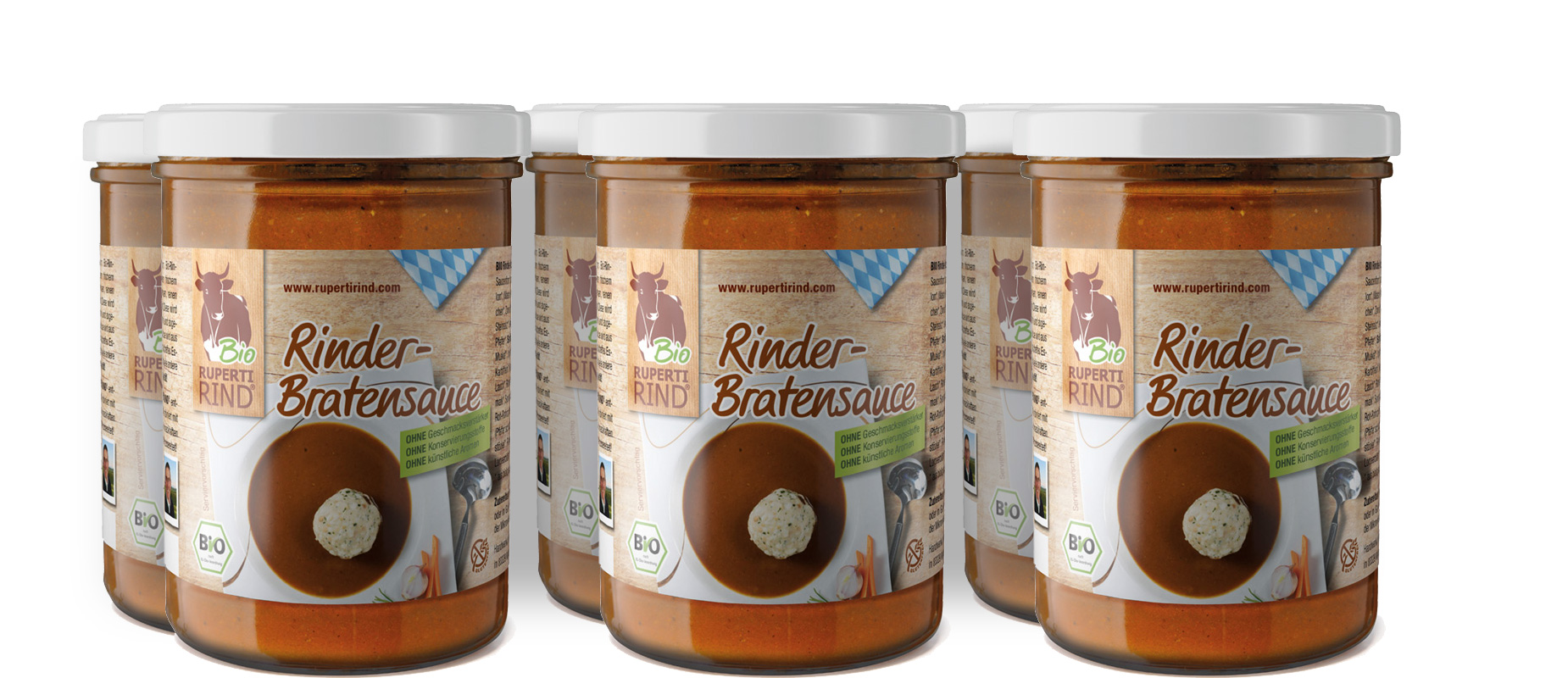 Unsere geschmackvolle Sauce vom Bio-Rinderbraten wird aus handverlesenem frischem Gemüse, angebratenen Rinderknochen, reinen Gewürzen und Kräutern hergestellt. Diese wird mit Rotwein und Rosmarin verfeinert und abgeschmeckt! Mit unserer Bio-Bratensauce wird aus allen Beilagen ein schnelles schmackhaftes Essen! Auch als Saucen-Grundlage für viele andere Fleischgerichte geeignet!