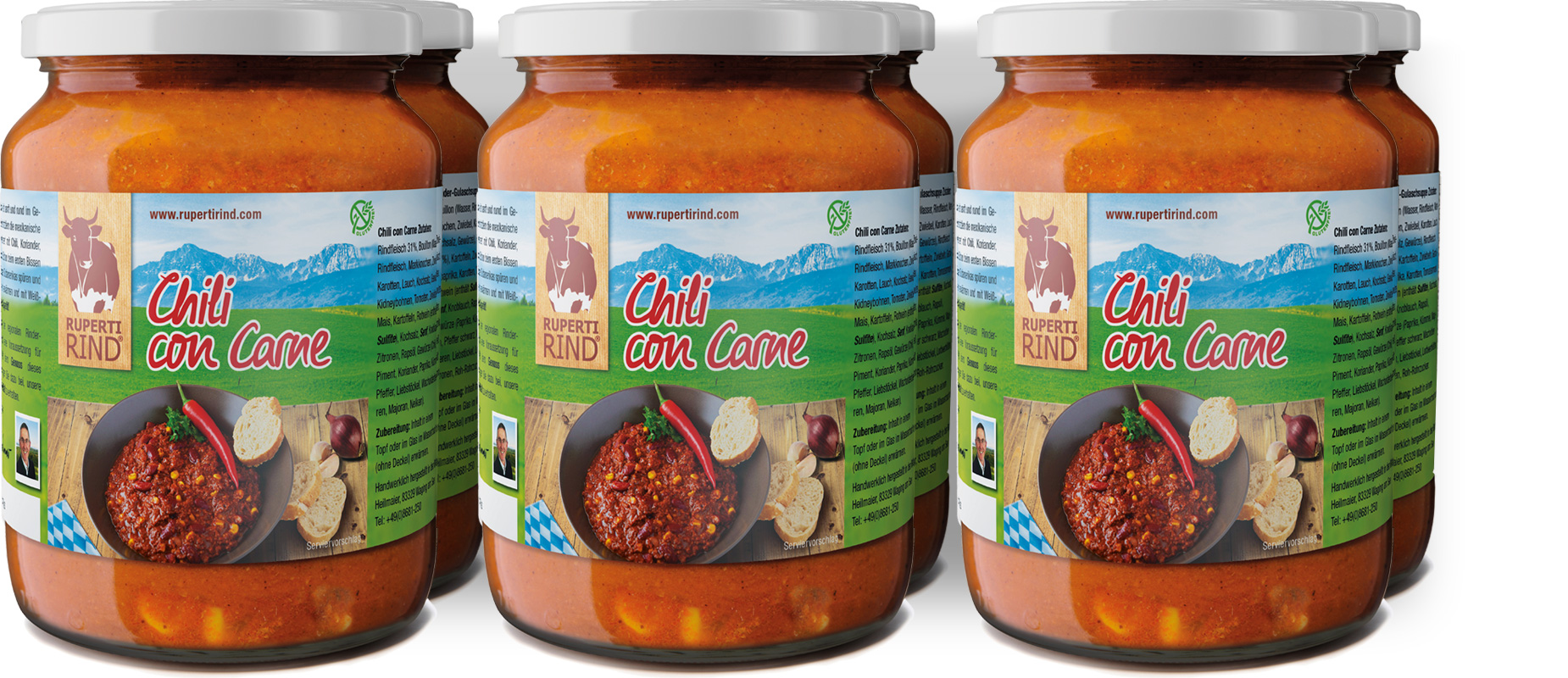 Unser Chili con Carne ist sanft und rund im Geschmack, behält aber trotzdem die mexikanische feurige Note – verfeinert mit Chili, Koriander, Paprika und Kümmel.