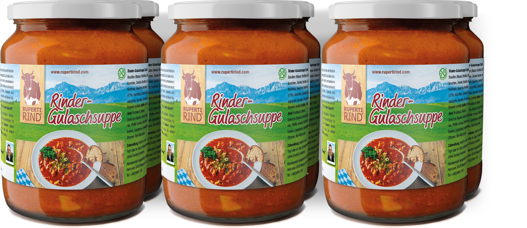 Da ist alles drin, was rein soll. Neben dem reichlich vorhandenem Hauptbestandteil, dem Rindfleisch, findet und schmeckt man auch Kartoffeln, Karotten, Zwiebeln und frischen Paprika. Alles wunderbar mit feinen Gewürzen abgestimmt. Nur noch erwärmen und mit frischem Bauernbrot genießen!