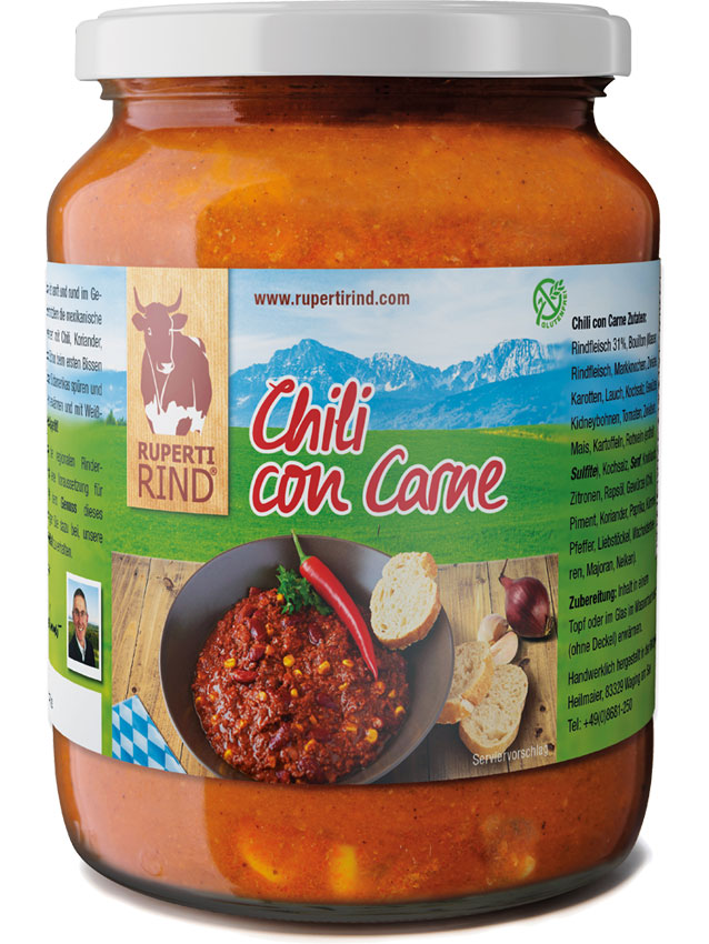 Unser Chili con Carne ist sanft und rund im Geschmack, behält aber trotzdem die mexikanische feurige Note – verfeinert mit Chili, Koriander, Paprika und Kümmel.