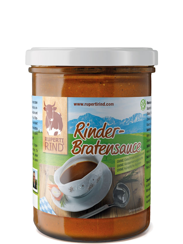 Unsere geschmackvolle Sauce vom Rinderbraten wird aus handverlesenem frischem Gemüse, angebratenen Rinderknochen, reinen Gewürzen und Kräutern hergestellt und mit Rotwein und Rosmarin verfeinert und abgeschmeckt – kombiniert mit vielen Beilagen ein schnelles schmackhaftes Essen! Auch als Saucen-Grundlage für andere Fleischgerichte geeignet!