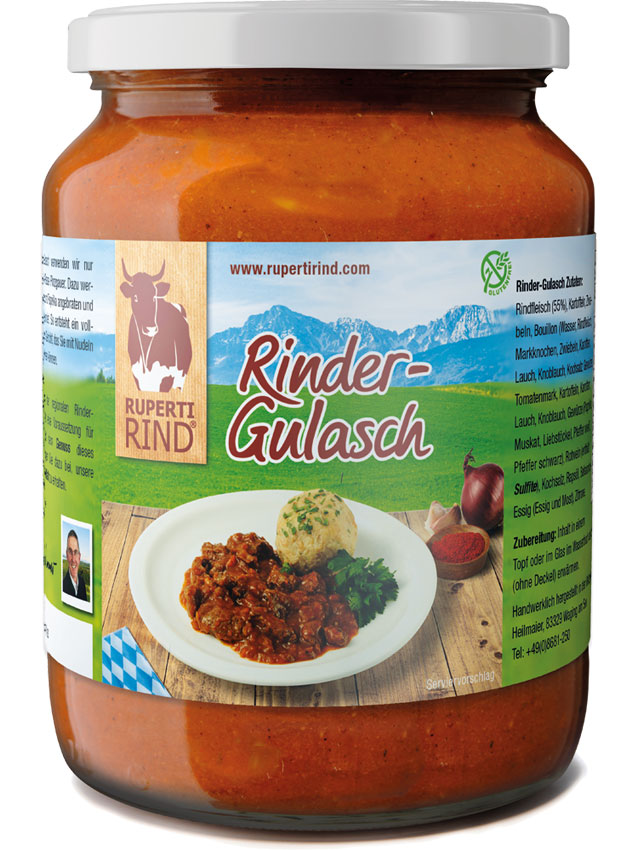 Für unser Rinder-Gulasch verwenden wir nur edles Rindfleisch der Rasse Pinzgauer. Dazu werden frische Zwiebeln und Paprika angebraten und mit Gewürzen abgerundet. So entsteht ein vollwertiges und leckeres Gericht, das Sie mit Nudeln oder Kartoffeln servieren können.